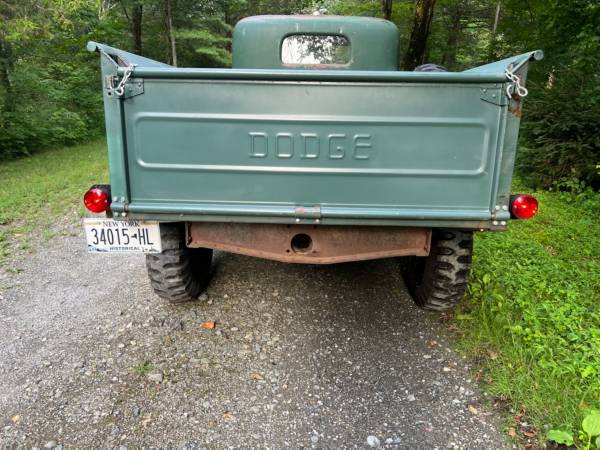 1947 Dodge Power Wagon WDX, 230ci flatedhead 6 cylinder, 4 speed manual, 2 speed transfer case, 4x4, proper Braden MU2 winch. Rare optional Model 61 cab heater. Lots of recent work, including brake work, 5 new tires, professional carburetor rebuild, electric ignition conversion, and more. Parts included