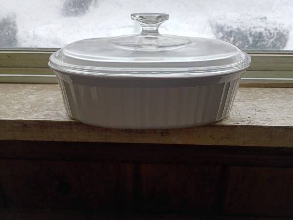 Vintage CorningWare 1 and 1/2 q oval casserole dish. French white. Brand new