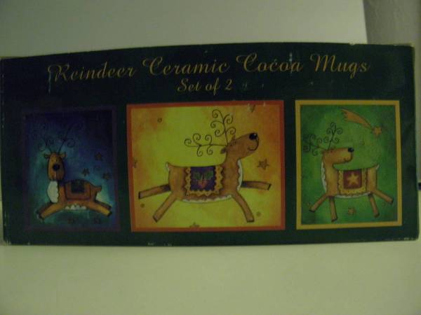 Reindeer Ceramic Cocoa Mugs - Set of 2 I will ship and accept PayPal Shipping will be extra