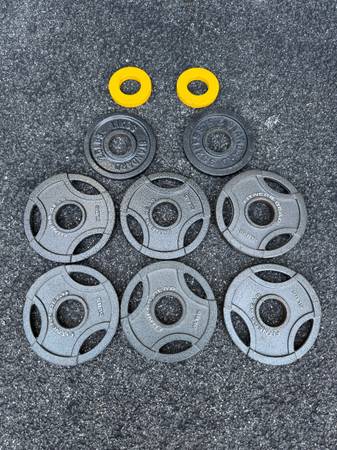Rogue Fitness dumbbell handle & collars & weight plates - sporting...